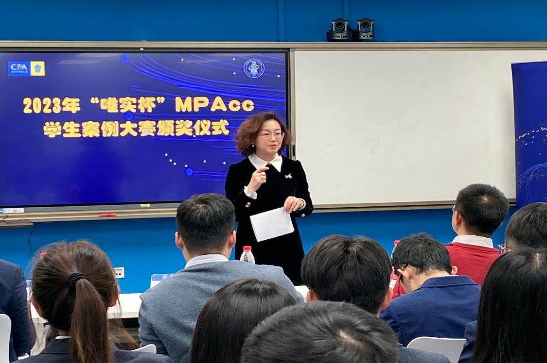 经济管理学院党委书记郑海涛老师首先在颁奖仪式上致辞,他表示,案例一直是经管学院的一张靓丽名片,案例教学几乎已融入北航经管学院专业硕士全部课程当中,学院的案例研究与开发能力一直位居全国高校前列。MPAcc教育中心与澳洲注册会计师公会的合作,赋予“唯实杯”学生案例大赛鲜明的特色,依托澳公会优质的平台资源,提高了大赛的国际化水准,也为学生拓展了实践领域与职业规划资源。他希望北航MPAcc继续立足学校和学院的学科优势,将数智会计办成北航特色。同时继续深化校企合作,共同推动产学深入融合与协同发展,培养更多兼具实践能力、创新意识和国际视野的会计领域高端管理人才。
