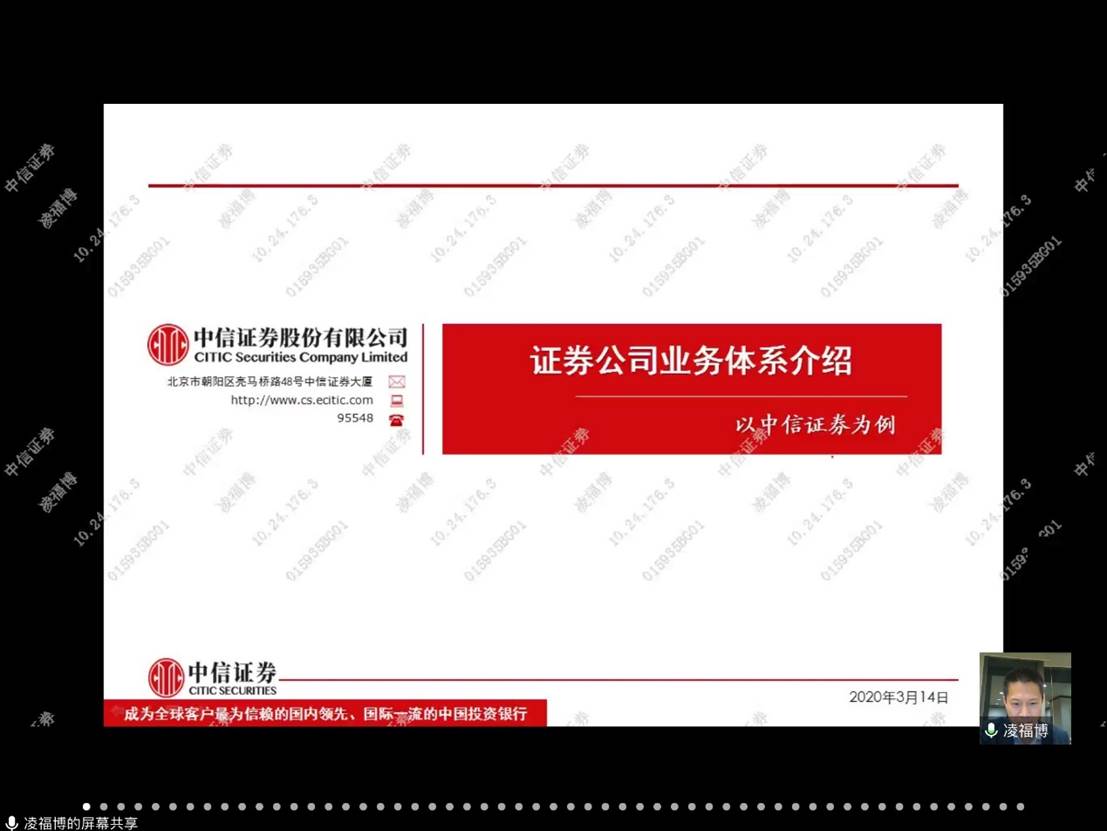 2020年3月14日晚,由北京亚洲成人在线一二三四五六区经济管理学院MPAcc中心主办,主题名为“证券公司部门架构及财富管理业务介绍”会计实务前沿讲堂在线上拉开了序幕。这也是北航经管学院在疫情期间,按照教育部“停课不停教、停课不停学”的总原则对线上讲堂模式的首次尝试。