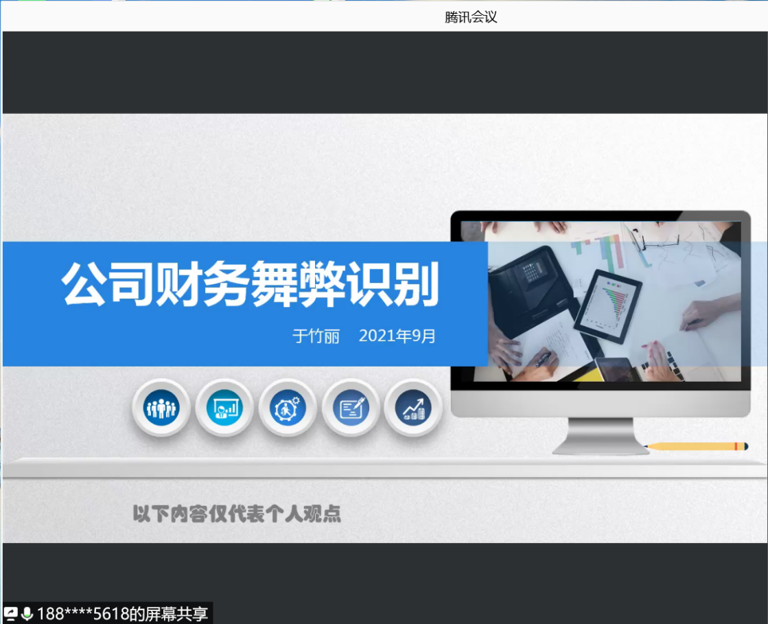 9月25日晚8点,2021级MPAcc新生迎来了第一期会计前沿讲堂——《公司财务舞弊识别》。本期讲堂邀请到了毕业于厦门大学会计学专业的博士于竹丽老师为同学们授课。于竹丽老师现就职于全国中小企业股份转让系统,主要从事公司监管工作,在财务会计、审计等领域具有丰富的实践管理经验和学术造诣。MPAcc教育中心主任白明老师主持了本期讲堂。