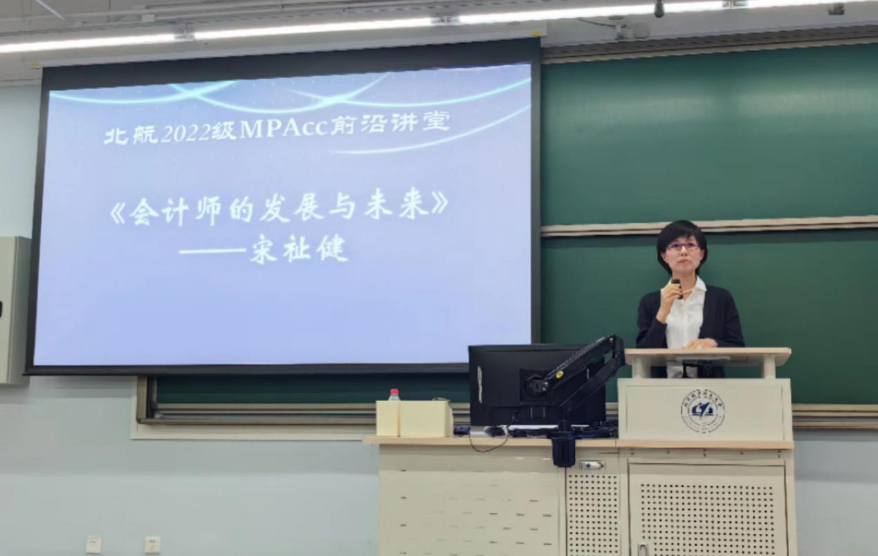 3月11日晚,2022级MPAcc第七期会计实务前沿讲堂在北航学院路校区5号楼112教室如期举行。本期讲堂邀请到了财政部中国注册会计师协会国际及港澳台事务部主任宋祉健老师作为主讲人,主题为《会计师的发展与未来》。北航经济管理学院MPAcc教育中心主任白明老师主持本期讲堂。