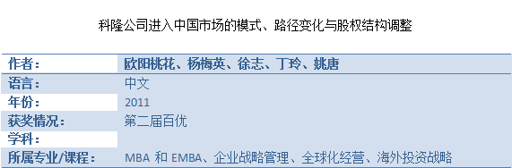 百优案例——《科隆公司进入中国市场的模式、路径变化与股权结构调整》