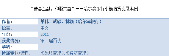 百优案例——《“普惠金融,和谐共富”——哈尔滨银行小额信贷发展案例》