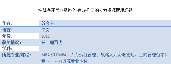 百优案例——《空降兵还是老资格?-京瑞公司的人力资源管理难题》