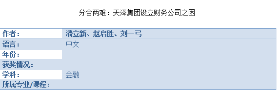 金融案例——《分合两难:天泽集团设立财务公司之困》