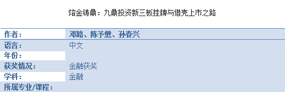 金融案例——《熔金铸鼎:九鼎投资新三板挂牌与借壳上市之路》
