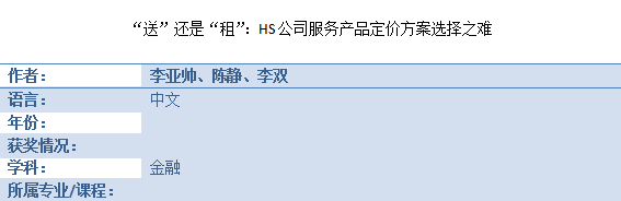 金融案例——《“送”还是“租”:HS公司服务产品定价方案选择之难》