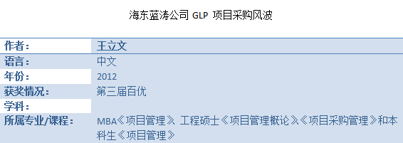 百优案例——《海东蓝涛公司GLP 项目采购风波》