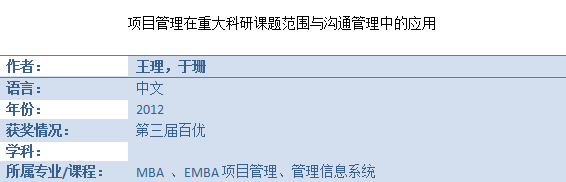 百优案例——《项目管理在重大科研课题范围与沟通管理中的应用》