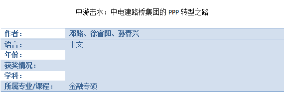 金融专硕案例——《中游击水:中电建路桥集团的PPP转型之路》