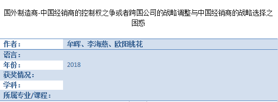 哈佛案例申报案例——《国外制造商-中国经销商的控制权之争或者跨国公司的战略调整与中国经销商的战略选择之困惑》