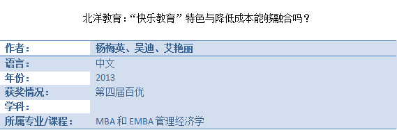 百优案例——《北洋教育:“快乐教育”特色与降低成本能够融合吗?》
