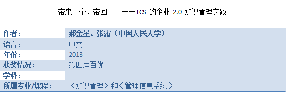 百优案例——《带来三个,带回三十——TCS 的企业2.0 知识管理实践》