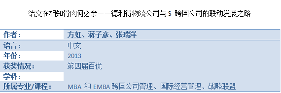 百优案例——《结交在相知骨肉何必亲——德利得物流公司与S 跨国公司的联动发展之路》