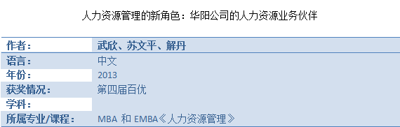 百优案例——《人力资源管理的新角色:华阳公司的人力资源业务伙伴》
