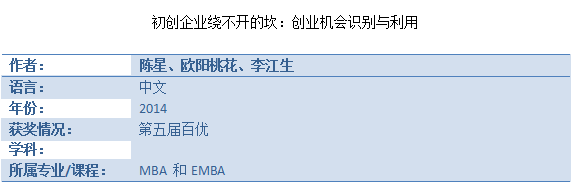 百优案例——《初创企业绕不开的坎:创业机会识别与利用》