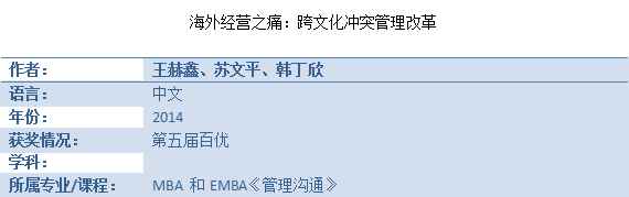 百优案例——《海外经营之痛:跨文化冲突管理改革》