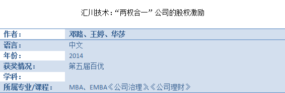 百优案例——《汇川技术:“两权合一”公司的股权激励》