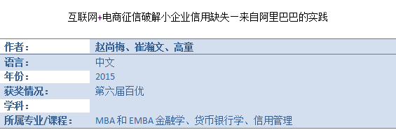 百优案例——《互联网+电商征信破解小企业信用缺失—来自阿里巴巴的实践》