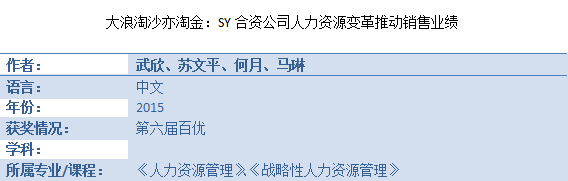 百优案例——《大浪淘沙亦淘金:SY合资公司人力资源变革推动销售业绩》