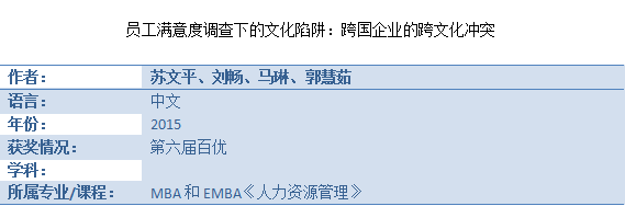 百优案例——《员工满意度调查下的文化陷阱:跨国企业的跨文化冲突》