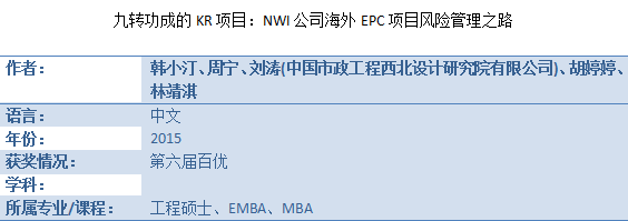 百优案例——《九转功成的KR项目:NWI公司海外EPC项目风险管理之路》