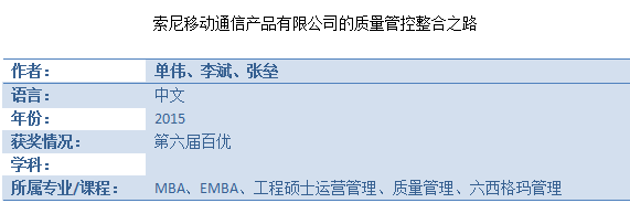 百优案例——《索尼移动通信产品有限公司的质量管控整合之路》