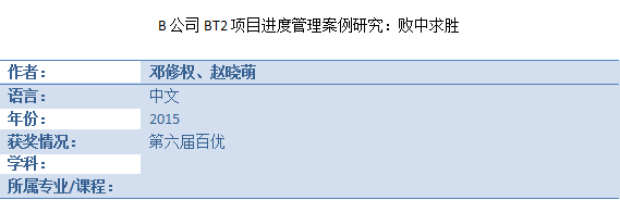 百优案例——《B公司BT2项目进度管理案例研究:败中求胜》