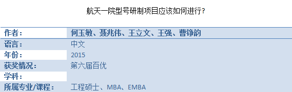 百优案例——《航天一院型号研制项目应该如何进行?》