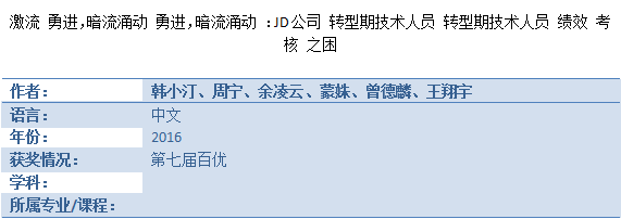 百优案例——《激流勇进,暗流涌动勇进,暗流涌动 :JD公司 转型期技术人员 转型期技术人员 绩效 考核 之困》