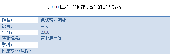 百优案例——《双CEO困局:如何建立合理的管理模式?》