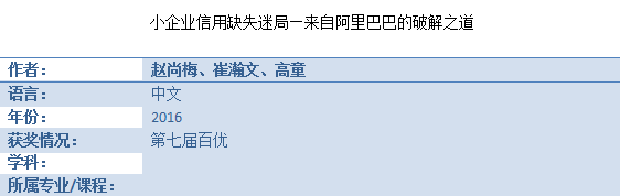 百优案例——《小企业信用缺失迷局—来自阿里巴巴的破解之道》