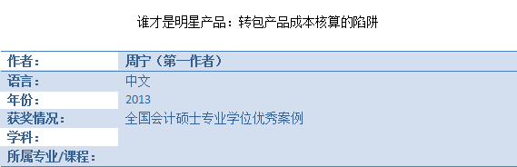 获奖案例——《谁才是明星产品:转包产品成本核算的陷阱》