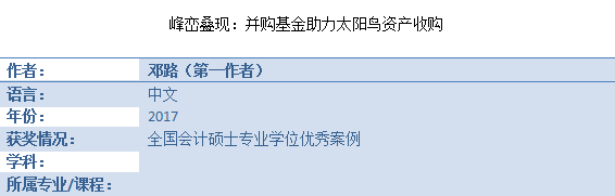 获奖案例——《峰峦叠现:并购基金助力太阳鸟资产收购》