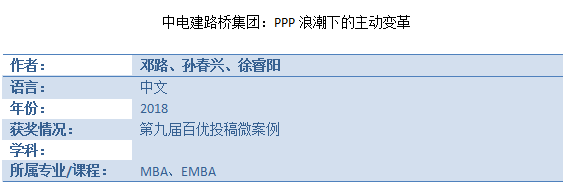 百优案例——《中电建路桥集团:PPP浪潮下的主动变革》