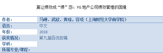 百优案例——《莫让绩效成“绩”怨:YG地产公司绩效管理的困境》