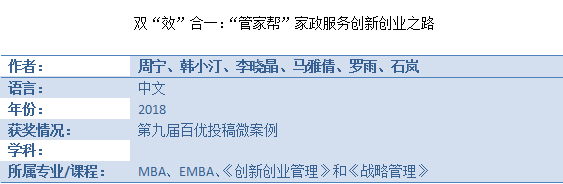 百优案例——《双“效”合一:“管家帮”家政服务创新创业之路》
