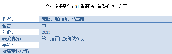 百优案例——《产业投资基金:ST重钢破产重整的他山之石》