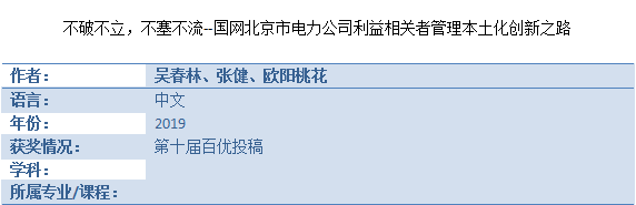 百优案例——《不破不立,不塞不流--国网北京市电力公司利益相关者管理本土化创新之路》
