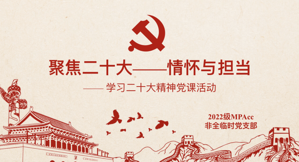 为响应学院党委号召,全面学习贯彻党的二十大精神,10月30日,2022级MPAcc非全日制研究生临时党支部通过线上会议的方式组织学习二十大精神专题党课,党支部书记程思佳主持会议,支部全体党员参会。